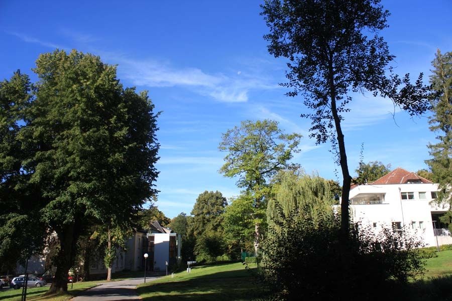 In über 100 Jahren ist auf dem Klinikgelände zwischen den Jugendstil-Gebäuden eine Oase der Ruhe entstanden: Mehr als 100 außergewöhnliche Baum- und Straucharten wurden hier aus aller Welt zusammen getragen. Sei es die Tulpen-Magnolie, der Urwelt-Mammutbaum, der lange als ausgestorben galt, dann in China wiederentdeckt und schließlich in 50 Ländern neu gepflanzt wurde oder die Trauerbuche, die seit 1907 im Park lebt. Ein Baumlehrpfad führt zu 25 besonders interessanten Baumarten, und auch vorbei an der Elisabethkirche im Stil der Neuromantik mit benachbartem Wildpark. Nach dem Spaziergang lädt das Café mit Außengastronomie zur Rast ein.