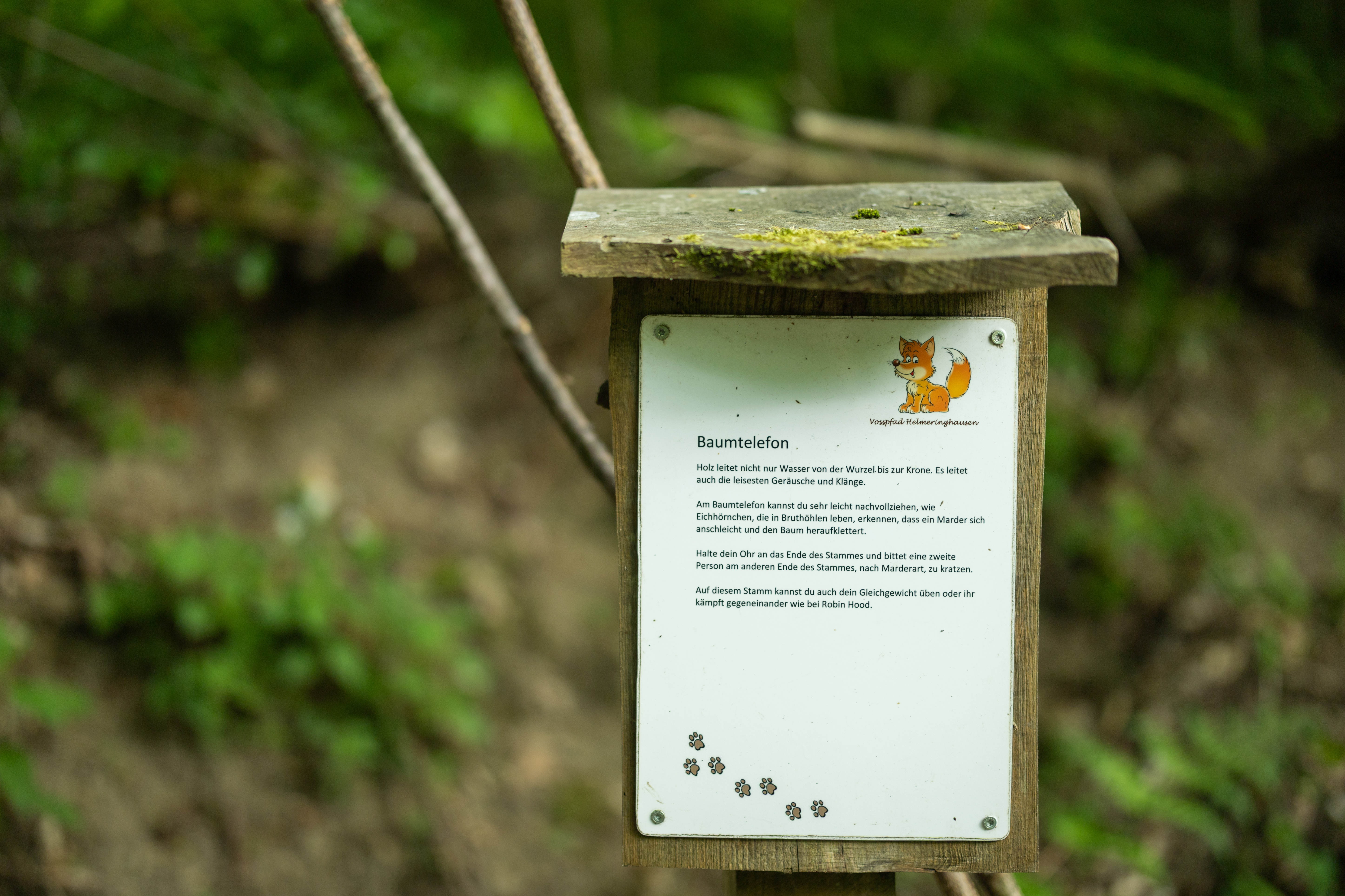 Von der Starttafel an der Vogelstange in Helmeringhausen geht es mit dem kleinen Fuchs über Stock und Stein: Baumtelefon, Baumgitarre, Fuchsbau und Tastweg sind nur einige der 21 Stationen, an denen die Kleinen spielerisch die heimische Flora und Fauna kennenlernsn