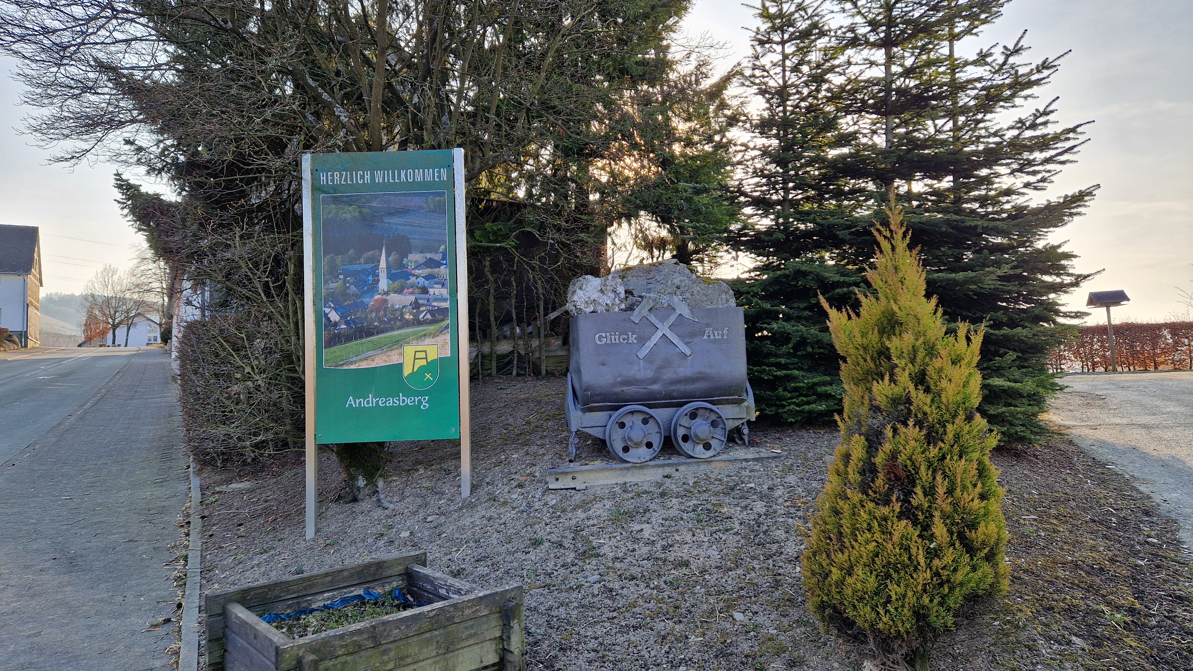 Start und Ziel: Wandertafel in der Ortsmitte Andreasberg (Dorfstraße, 59909 Bestwig Andreasberg)