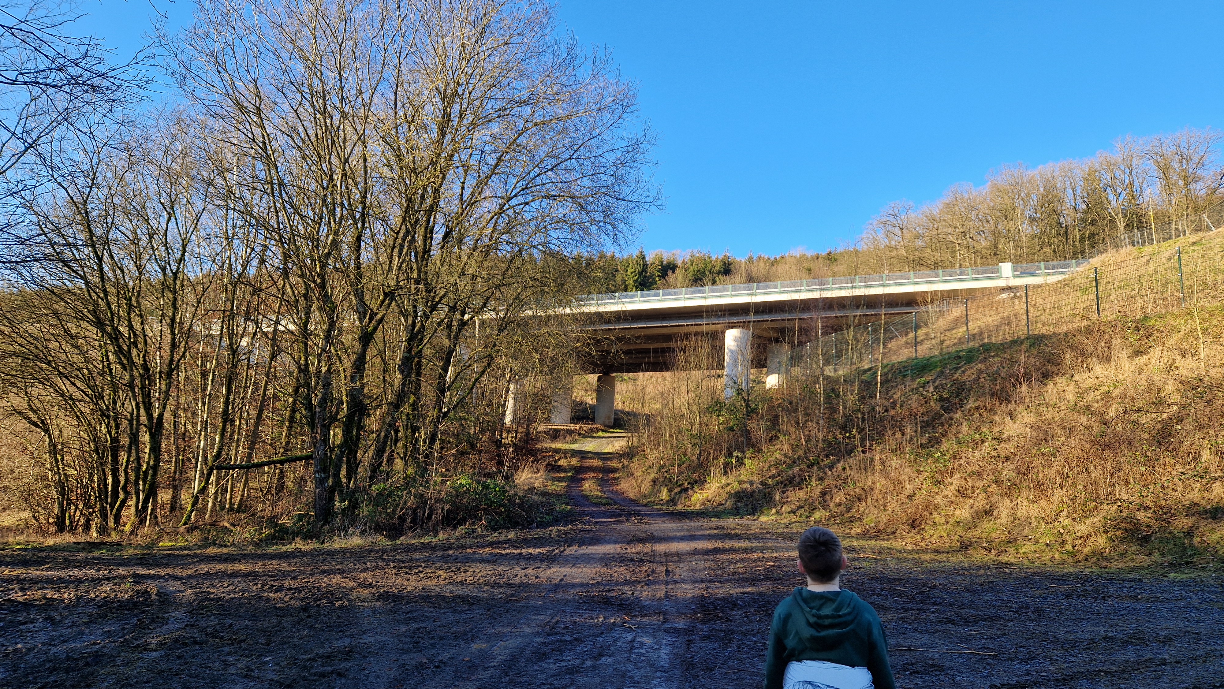 Anstieg mit tollen Ausblicken auf den Naturpark Arnsberger Wald - Unterquerung der Autobahnbrücke – Kreuzigungsgruppe (letzte Station des Nuttlarer Kreuzweges mit tollen Ausblicken ins Ruhrtal) – Abstieg ins Ruhrtal bis zur Alfert (aufgestaute Ruhr) – Querung von der Bahnlinie, der Ruhr und der Bundesstraße – Marktplatz Ostwig mit St. Joseph-Kirche – Info- und Rastplatz am Schieferbau Nuttlar (mit Bergwerktauchen) – Ortsteil Dümel – Dümelskopfgrotte – Querung der Nuttlarer Königstraße (hier nur 500 m zur Dorfmitte) – Anstieg zum Schlinksiepenkopf (auch Autobahnende) – Ausblicke auf die höchste Autobahnbrücke (115 m) in NRW – Abstieg zum Wanderparkplatz Evenkopf