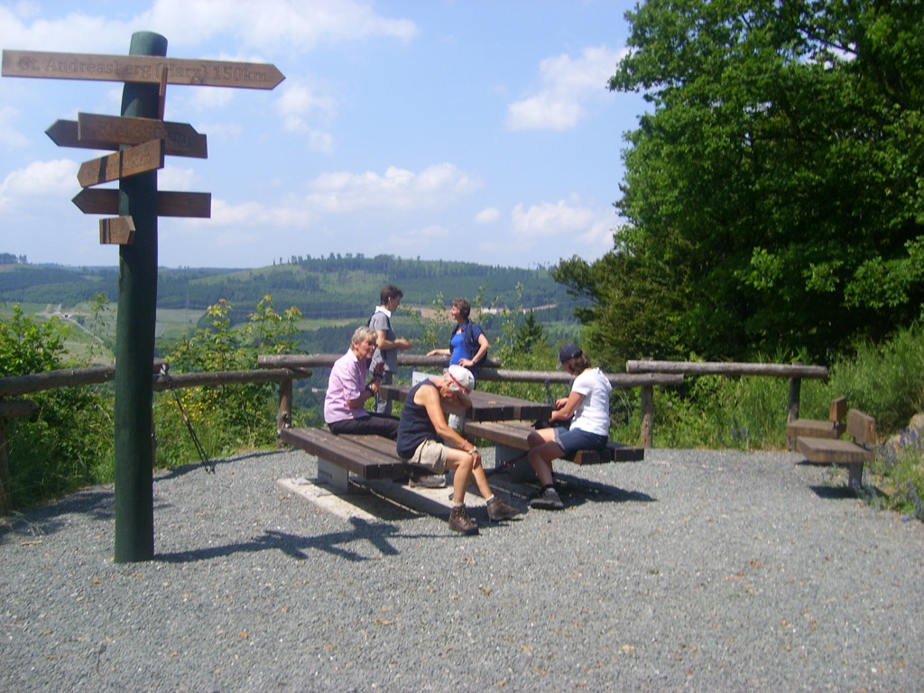Am Bürger- und Rathaus in Bestwig beginnt die erste Tour auf dem Bestwiger Panoramaweg. Als erstes erfolgt der Aufstieg zum Westfeld. Mit Blick auf den Stausee geht es weiter über den Alten Heerweg und den Oehrenstein, vorbei am Hexenplätzchen zur Freizeitanlage Andreasberg. Während Dörnberg 1759 erstmalig erwähnt wird, ist das etwas unterhalb gelegene Andreasberg das jüngste Dorf der Gemeinde Bestwig. Im Zuge der bergbaulichen Boomphase, die wohl nur mit einem Goldrausch verglichen werden kann, bezog ein Treck aus Sachsen an nur einem Tag im Jahre 1854 die vorher notdürftig von der Bergwerksleitung zusammen gezimmerten Häuser.