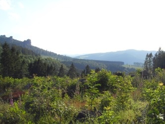 Vom Wanderparkplatz oberhalb der Schützenhalle geht man einfach den Weg bergauf, nach ca. 680 m bis zu der Abzweigung mit der Bezeichnung Schlage. Hier folgt man dem Weg nach links – die Einheimischen nennen ihn den oberen Waldweg, er läuft parallel zum Oberdorf. Am Ende des Weges , an einer Kreuzung steht eine Schutzhütte mit einer Vesperstelle. Der Ausblick ist herrlich zu jeder Jahreszeit. Durch den Sturm Kyrill kann man ringsherum die imposanten Berge sehen, außerdem die Bruchhauser Steine und das wunderschöne Schmalatal.