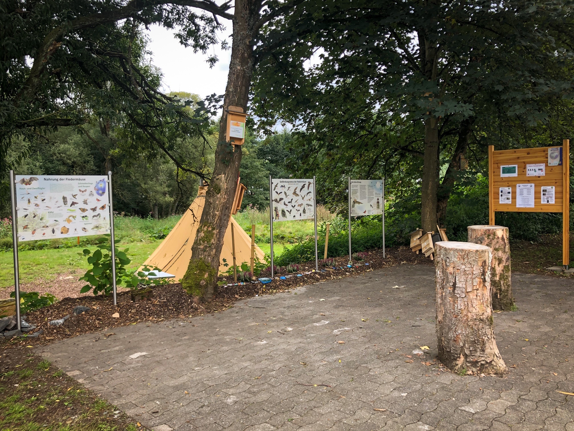 Wenn Sie den Wald verlassen, lohnt es ich kurz stehen zu bleiben. Sehen sie ein interessantes, mit Tiergraffitis verziertes, grünes Gebäude? Das Wasserkraftwerk Alfert wird von den Mainzer Stadtwerken betrieben und beherbergt unter anderem die Natur Ranger Bestwig. Einen engagierten Verein der Kindern und Jugendlichen unsere Natur näher bring und bekannt für seine Fledermausafaris ist.