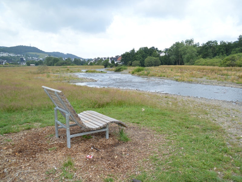 Der Weg führt Sie an der Firma Busch vorbei. Nun gelangen Sie zur renaturierten Ruhr. Die Landschaft öffnet sich und die Ruhr hat freien Lauf. Eine große Wiesefläche mit mehreren Bänke sowie ein Rastplatz direkt an der Ruhr laden zum Verweilen und entspannen ein. Beim Insektenhotel gibt es einiges zu entdecken. Ihr Weg führt Sie dann über eine Holzbrücke über die Ruhr. Nach kurzer Zeit kommen Sie an einen Spielplatz mit Trampolin und Bolzplatz. An zwei außergewöhnliche Erlebnismöglichkeiten gelangen Sie, wenn Sie dem Weg entlang der Ruhr folgen. Es wurde ein Steg in die Ruhr gesetzt. Auf diesem können Sie, vorzugsweise im Liegen, die Ruhr beobachten. Ein weiterer sich lohnender Blick ist auf das Bodenkunstwerk „ReKultivierung“. Das Kunstwerk wurde in Verbindung mit der Vereinigung „aufruhr“ erstellt. Eine Tafel zum Bodenkunstwerk ReKulitvierung gibt nähere Informationen. Des Weiteren informiert eine Tafel über den Ort Velmede.