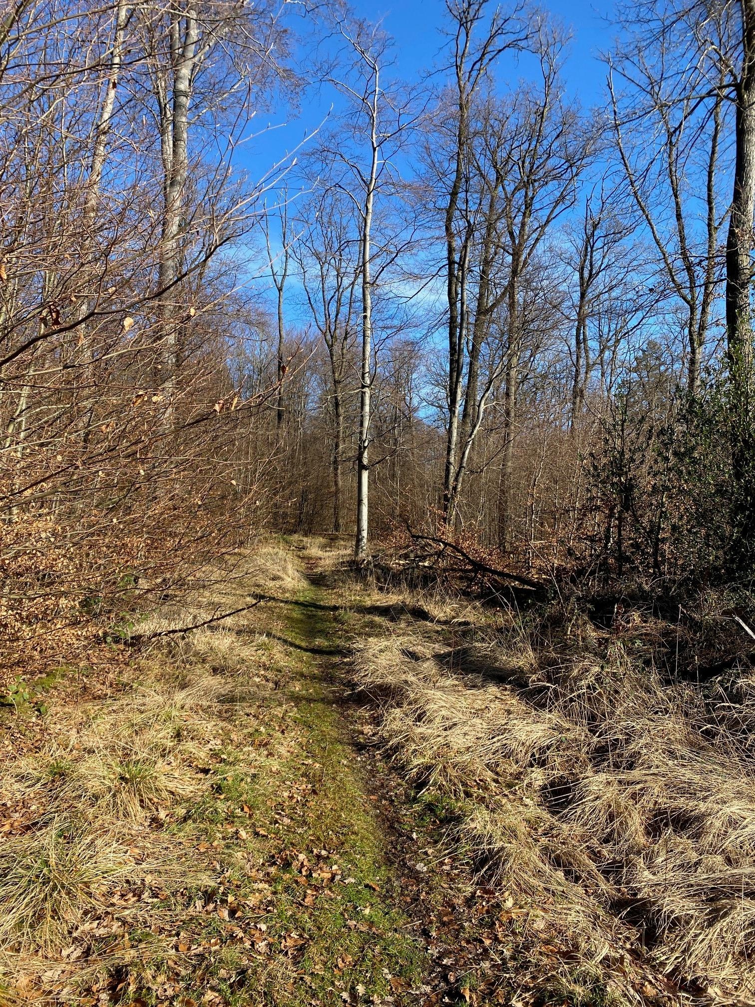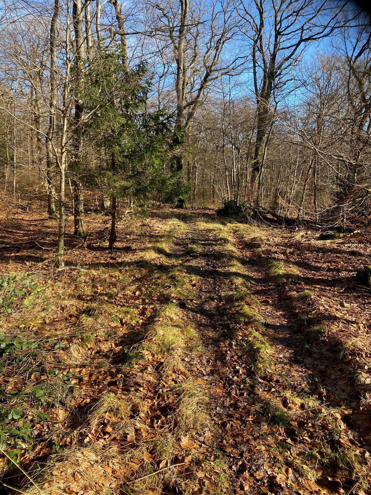 Oben angekommen biegen wir wieder rechts ab und folgen für eine recht lange Zeit dem Waldwirtschaftsweg.