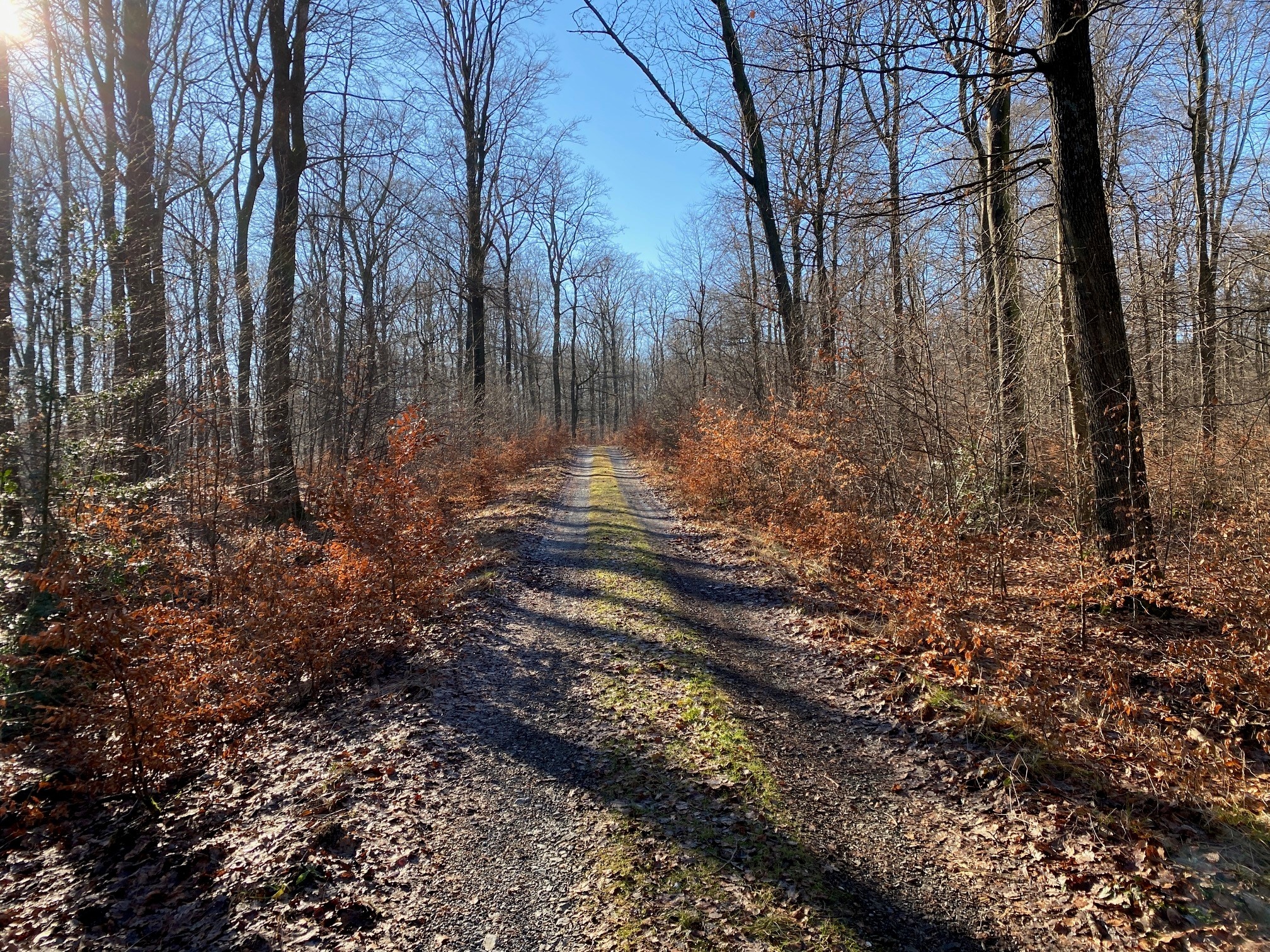Am Ende des Weges stoßen wir auf einen asphaltierten Weg. Wir biegen hier rechts ab und folgen diesem Weg für ca. 300m. Wir sind jetzt wieder im Wald angekommen! Wir biegen links ab und folgen einer sehr schönen, aber auch hier wieder einem teilweise ausgefahrenem Waldweg bergrunter (ca. 2km langer Abstieg). Wir sind jetzt fast wieder im Bilsteintal angekommen und biegen kurz vor dem Radweg rechts ab in einen alten Holzrückeweg und folgen diesem, bis wir an der L735 wieder aus dem Wald rauskommen.