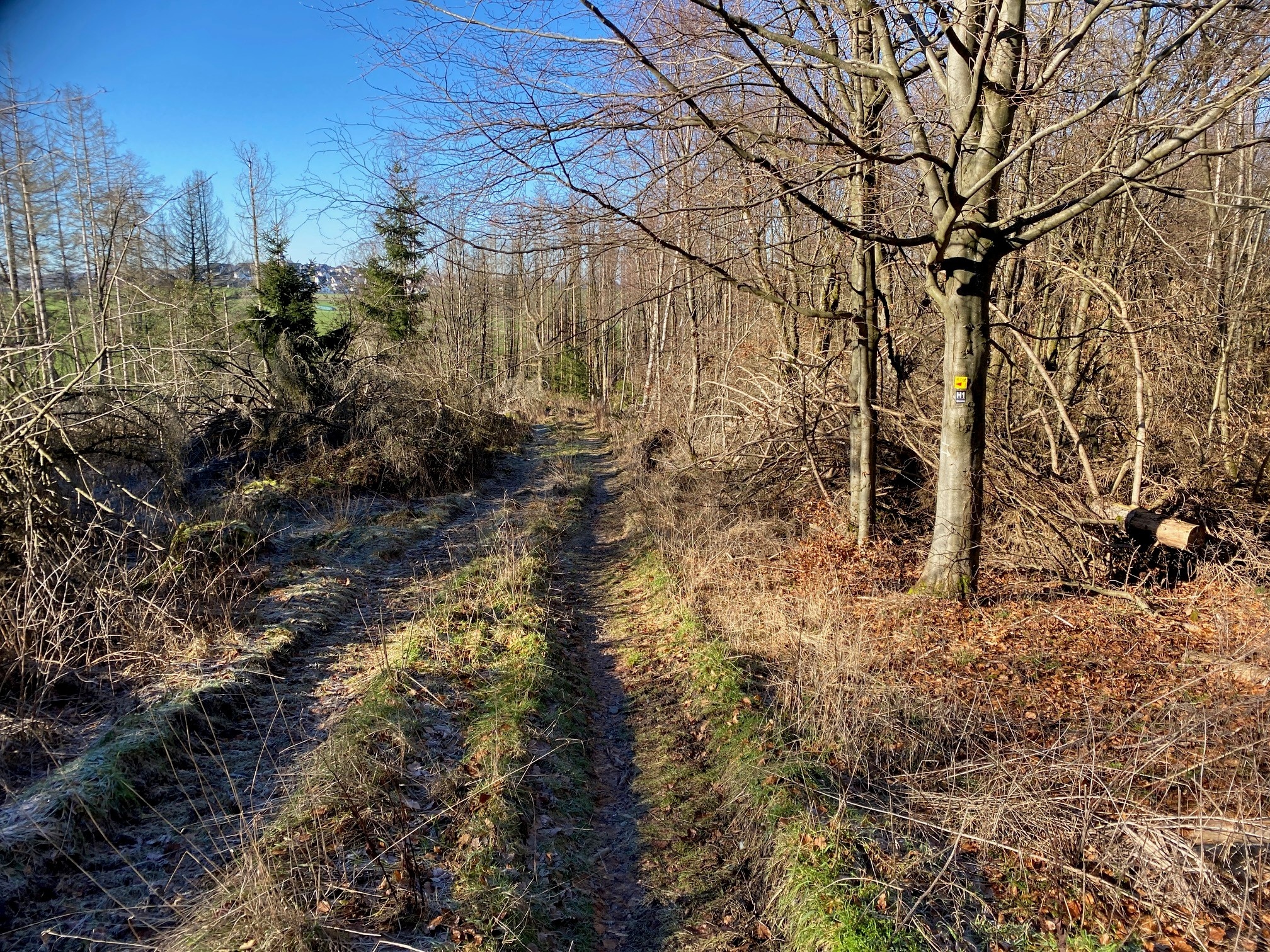 Wir folgen diesem Weg nach rechts und können nach ca. 2 km wieder links in den Wald einbiegen. Jetzt folgt eine wirklich anspruchsvolle Bergetappe über einen ehemaligen Waldwirtschaftsweg hoch wieder auf den Püsterberg. Der Anstieg ist wirklich anstrengend, aber der Wald ist hier sehr schön und ruhig.